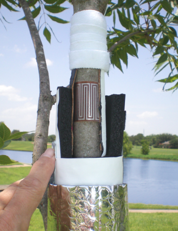 Dynagage包裹式傳感器利用能量平衡原理,通過測量植物蒸騰時水分運(yùn)輸產(chǎn)生的熱量變化,進(jìn)而確定植物的莖流速度,這是目前測量植物莖流可靠的技術(shù)方法。