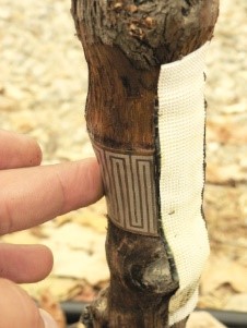 可測量8~29mm直徑的莖干,適用于葡萄、獼猴桃等藤本植物,其莖干的特點(diǎn)是多結(jié)節(jié),且相鄰兩個結(jié)節(jié)間距很短。測量時,傳感器可以纏繞在植物莖干上。該傳感器很薄,柔韌性強(qiáng),用透氣性較好的彈力尼龍纖維做阻熱材料,其較短的豎向長度非常便于安裝,而且更易貼合具有不規(guī)則生理彎曲的莖干。型號如下: