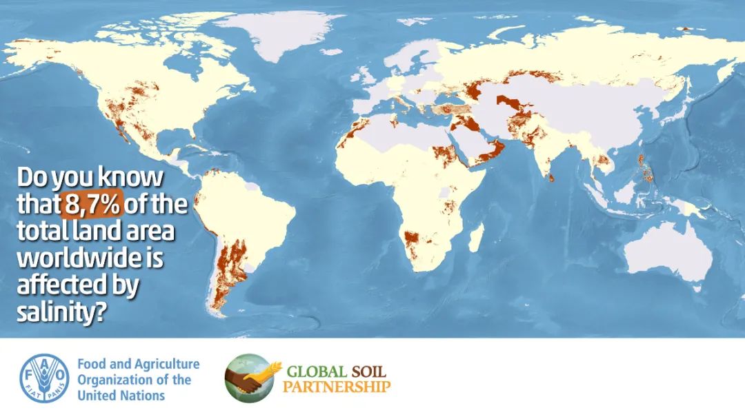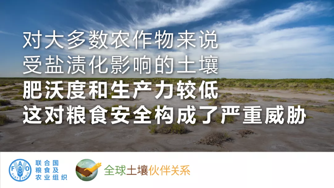 聯(lián)合國糧農(nóng)組織舉行“世界土壤日”紀念活動。©糧農(nóng)組織-農(nóng)作方法不可持續(xù),過度開發(fā)自然資源,人口不斷增長,這一切讓土壤承受的壓力越來越大,并造成土壤在全球范圍內(nèi)以驚人的速度退化。-糧農(nóng)組織10月發(fā)布的全球鹽堿土壤分布圖顯示,全球超過8.33億公頃的土壤已經(jīng)受到鹽堿化的影響。 -根據(jù)測算,超過10%的農(nóng)田出現(xiàn)鹽堿化,對全球糧食安全構(gòu)成重大威脅。-中亞、中東、南美、北非和太平洋區(qū)域是重災區(qū)。管理鹽堿化土壤需要綜合施策,采用可持續(xù)的土壤、灌溉和排水管理方式,選擇耐鹽作物和植物,包括能夠在鹽堿環(huán)境中良好生長的鹽生植物。