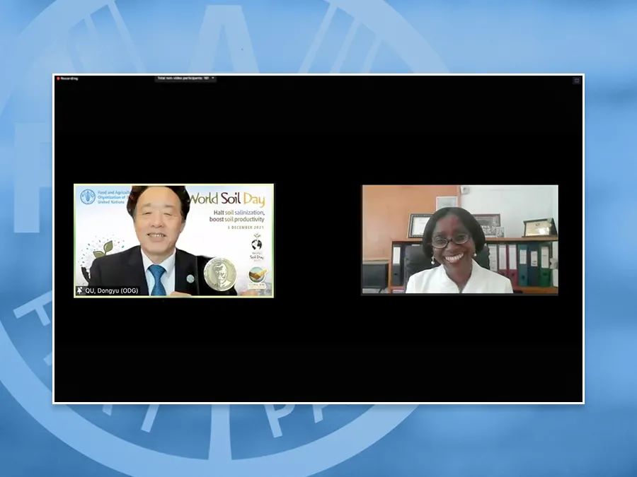 糧農(nóng)組織總干事屈冬玉為剛果共和國的土壤科學家Lydie-Stella Koutika頒獎。©糧農(nóng)組織點擊文末鏈接了解糧農(nóng)組織在土壤方面的工作, 其中全球土壤伙伴關系匯聚了土地使用者和決策者等一系列利益相關方,通過協(xié)作共同發(fā)力,改善土壤治理和促進土壤的可持續(xù)管理。伙伴關系的主要工作包括:定期編制《世界土壤資源狀況》報告;在發(fā)展中國家培養(yǎng)數(shù)字土壤制圖能力,形成各個層級的土壤信息和數(shù)據(jù);建立國家土壤信息系統(tǒng);開發(fā)各種工具加強土壤健康和防止退化,并在實地推廣良好做法;創(chuàng)建和協(xié)調(diào)可持續(xù)土壤管理的技術(shù)網(wǎng)絡,進行宣傳倡導。